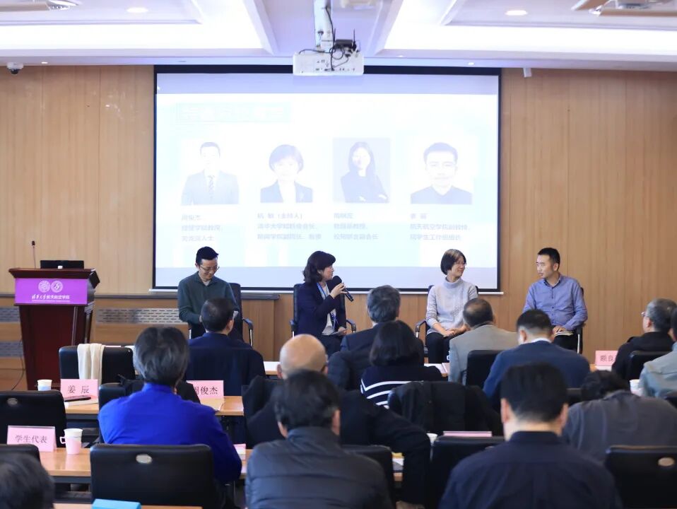 圆桌讨论环节,清华大学党外知识分子联谊会会长、新闻与传播学院副院长杭敏,知联会副会长、物理系教授周树云,无党派人士、经济管理学院教授周俊杰,航天航空学院副教授、学院学生工作组组长姜辰作为特邀讨论嘉宾,结合自身专业领域,探讨如何一体推进教育科技人才发展。